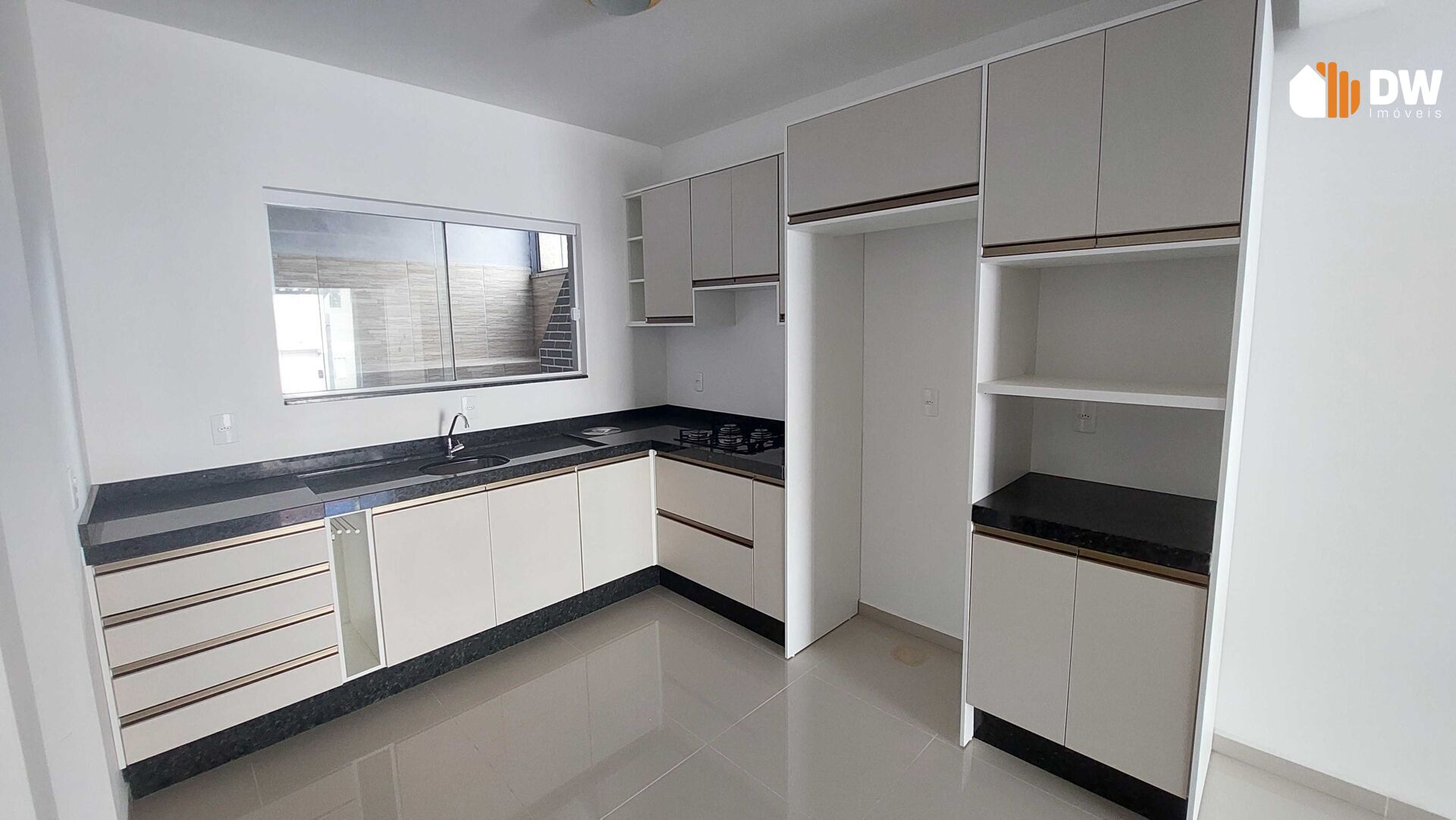 A cozinha, já vem com móveis planejados instalados.